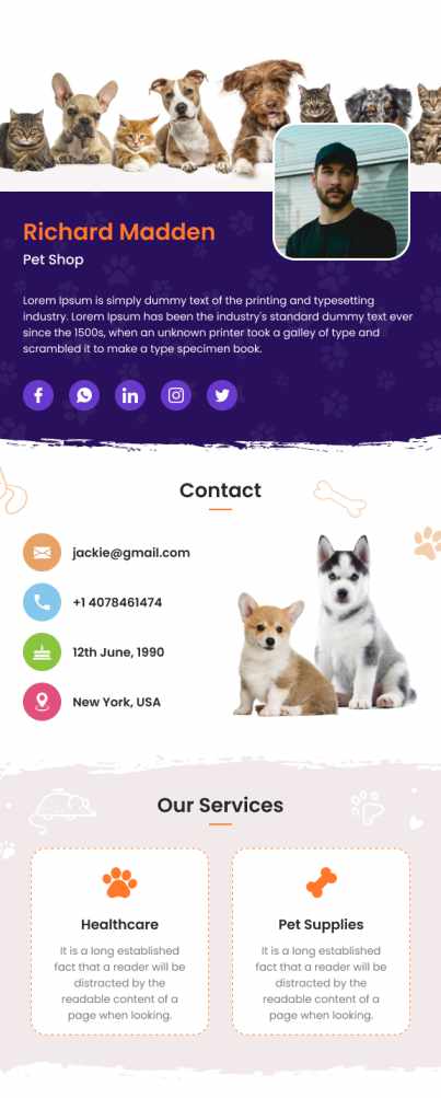 Pet Shop vCard