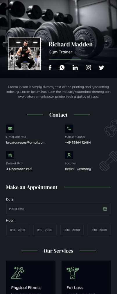 Gym Trainer vCard
